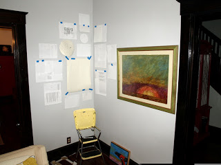 We took a tip from Martha and made a cut out of everything we wanted to hang and then arranged the paper on the wall first. This is SUCH a good idea especially when arranging an eclectic mix of pictures and hangings. In the end it saves a lot of time and headache.
