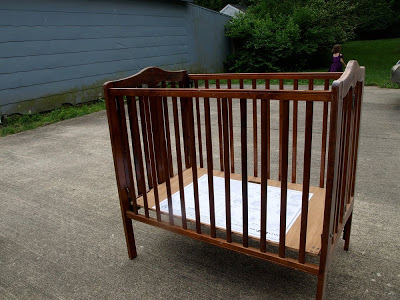 We had this crib from our 1 bedroom NYC apartment days, I painted it white for about $25.00 (4-5 cans spray paint)