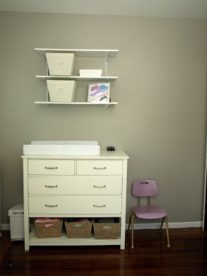Well I hesitate to share these photo’s because I wanted to wait until the nursery was totally, totally finished (still waiting to get the curtains, and some more art work hung up), but now that the little miss is here and we’ve got stuff strewn about I’m not sure it will look as nice when I finally get the last things together.  But of course, if I do get the nursery all together and looking nice, I’ll post it on the blog.  Shoot, what won’t I post on the blog?