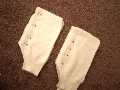 So I decided to use the ribbing along the cuff to be the bottom of the pants…which is why I didn’t end up needing to do a hem.  It worked out great.  You need 4 total pieces–so I cut out 2 at a time so they would match up well.
