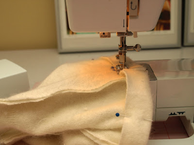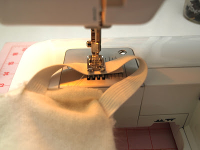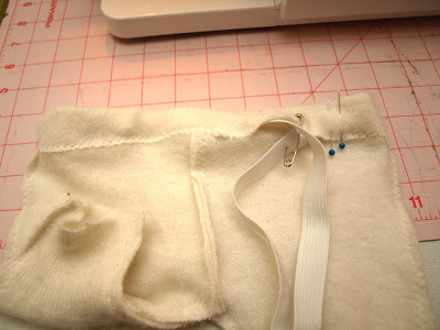 Now you can see how I sewed almost all the way around, but left a little opening.  I just used the pink pants as a guide to figure out the length of my elastic.  Give yourself an extra inch or two for when you need to sew the ends of the elastic together.  Hopefully that all makes sense.