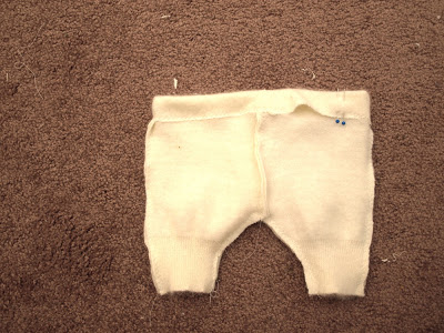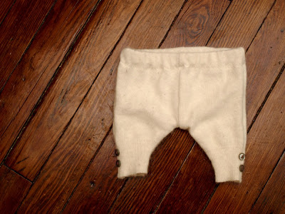 Warm, fuzzy winter baby pants in no time.  Seriously using an old sweater made it SO much easier–no ironing and no zig zag-ing or finishing the edges.  These were super quick–made in less than an hour. They’re not perfect, but they’re really warm and super soft.