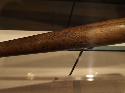 A few weeks ago we took a day trip to Louisville. Yes, Kentucky! One of those states where you think, What in the world is in Kentucky? Well I was there and I saw it! Turns out people live and work there just like in every other state. Fascinating. We really loved our visit and even got to meet up with one of my good friends from college (Hi Francis!–why didn’t we take any pictures?). From what we saw Louisville is a really lovely city and we want to visit again soon. My only regret is not taking more pictures. However we did get some pictures of our first stop which was the Louisville Slugger museum and factory. Now we’ve done some “factory tours” that are no where near the actual factory and they just show you a bunch of TV clips demonstrating how they make their product and you’re like, hmmmm…I could have watched this at home, thanks guys (I’m talking to you Jelly Belly). But here you got to walk through the actual factory and watch them make actual baseball bats. Anyone who knows me, knows I’m not into professional sports at all….like, at. all. But this was really cool. Unfortunately we couldn’t take any pictures in the factory because it’s top secret. Seriously. How very Willy Wonka of them right? No Oompa Loomp’s though. Long story short….the bat factory was cool. Here are some pictures from the museum part of the factory.