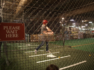 The Mr. taking some hits in the batting cages. He did alright…I also decided to step into the cage. Aaaaand I hurt my wrist. Stop lauging.