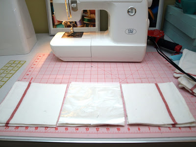 Following the existing fold lines of the napkins I folded top half over again, placed the baggie in the middle and cut on each side.