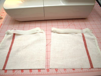Then I simply opened it up, and placed the velcro on each top to sew in place.  If you’re new to sewing with velcro just make sure you get the velcro that doesn’t have a sticky back.  The sticky stuff will just gunk up your sewing machine and cause all sorts of problems.  Also I placed the velcro on one of the sides that was already hemmed…that way I don’t have to do that and it makes a much nicer opening on top.
