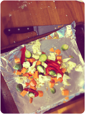 The next meal is something we have come to love at our house.  Easy, tasty, healthy and filling.  My husband is not a tree hugger by nature.  He’s doesn’t do yoga or care about cage-free hens.  And he loves this dish.   You can use any number of veggies for this, here are some of our favorites:  sweet potatoes, brussel sprouts, cauliflower, carrots, red pepper.  Could use any root veggies, squash, and even something like leeks with regular potatoes would probably be good.