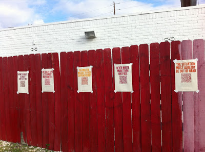 I had received an anonymous (at least anonymous at the time) package in the mail asking for my participation in an art performance? Project? Not sure. Anyway the instructions were to hang these posters someplace public, take pictures, return and report and all that. The posters are instructions on writing a crazy love letter. I was supposed to do this for 7 day’s ending on Valentine’s day…I did it all yesterday (such a rebel).