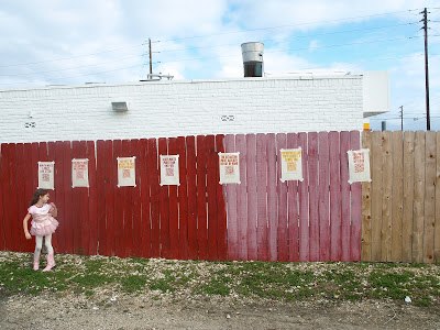 In the name of art I threw the kids in the car, cranked up the music (the song you’re listening to) and hung some posters. Keep listening and check out the pictures below and you should have a pretty good idea of the whimsical and upbeat vibe I had while hanging some posters on a random wooden fence in a run down shopping mall.
