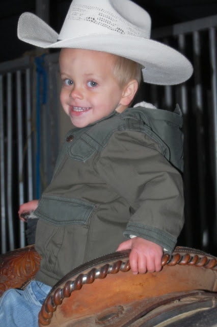 was playing and smiling I noticed a little cowboy hat under a fence panel and