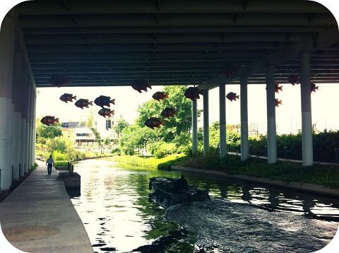 It’s a fun, festive place but not really my thing. Also, I used to think it was a man made river, it’s not. My bad. Anyway, it wasn’t until very recently that I discovered the River Walk is actually several miles long, and only one little part of it is the down-town-touristy part. A couple weeks ago I told you about the River Walk in the King William district neighborhood–probably my favorite part of San Antonio yet. Well last week I discovered another part of the River Walk called the Musuem Reach. In their own words: