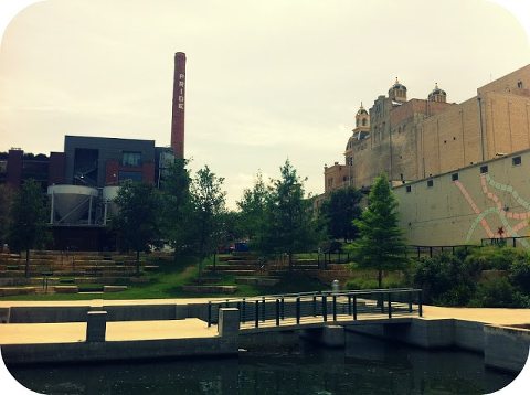 When you hear about San Antonio, you hear about the River Walk. I’ve read that it’s Texas’ most popular attraction. See it’s a River, and you can walk along either side of it. Thus, River Walk. Until recently I thought the River Walk only encompassed this small, hustle-y bustle-y part of downtown that was flanked with restaurants and shops on either side, and tourist boats floating down the middle. The only River Walk I was aware of looked like this: