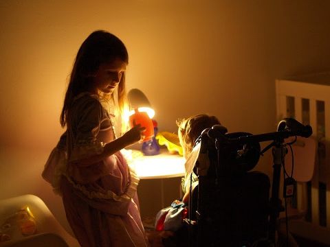 I get a lot of credit for being Lamp’s mom, but I’ve always known I couldn’t have done it without her big sister coming first. Of course I love both my girls equally and without thought or reason–I love them because I’m their mom. That’s it. But as an adult I also have the ability to work through and process emotions about being the mother of a daughter with special needs. What does that mean for us? How do we feel? How do we view the world differently? Yadda, yadda, yadda. But for PSP, there’s no processing or complex emotional thoughts. This is her sister and she loves her fiercely. Now lets go draw the curtains, turn on the lamp and have a tea party. It’s that simple… and I love her for it.