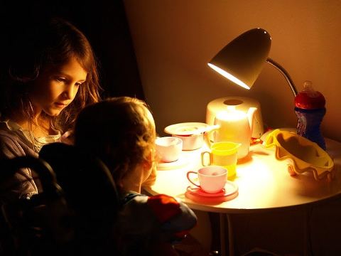 The girls had been playing quietly close to dinner time for much too long. I went to go inspect and instead of some terrible mess or other wicked behavior, I found them engaged in a lamplight tea party. Both girls dressed in their finest princess wear (Rapunzel and Snow White) with a little tea party set up at Lamp’s bedside table…the perfect height for Lamp’s powerchair. I knew this was all PSP’s doing. Be still my heart.