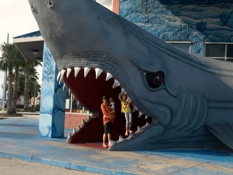 Yes. A giant mermaid sandcastle fountain flanked by seashells and dolphins. It’s no Trevi fountain, but pretty awesome in it’s own right. And please, raise your hand if you love a giant shark mouth. Yeah, I think that’s everyone.