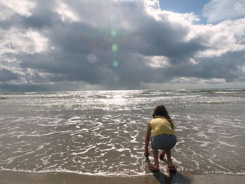 I’m no photographer, but the light, the light! Fit for a choir of angels it was. The light, the clouds, the land and my loves made this place magical. This is Padre Island National Seashore, a 70 mile stretch of undeveloped beach that you’re allowed to drive on, camp on, play on, whatever and it is practically untouched. Yes there were other campers and people about, but we only went a mile or two in. It was beautiful.