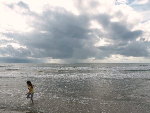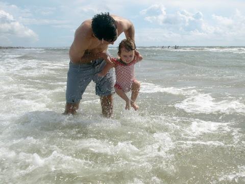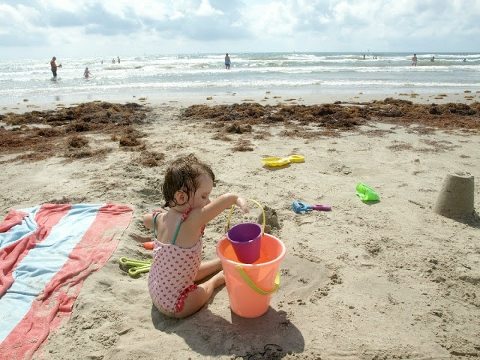 Do all kids love the beach this much? I think so. A giant swimming pool and rinsable mud…nature is so smart. My girls could do this all day, every day. The waves, the sand, the sun. Mix it up, rinse, repeat. The rain eventually did come, but we had 4 glorious hours and we were spent. Afternoon ‘naps’ and an evening meal of deep-fried seafood and ice cream sealed the deal on a perfect day.