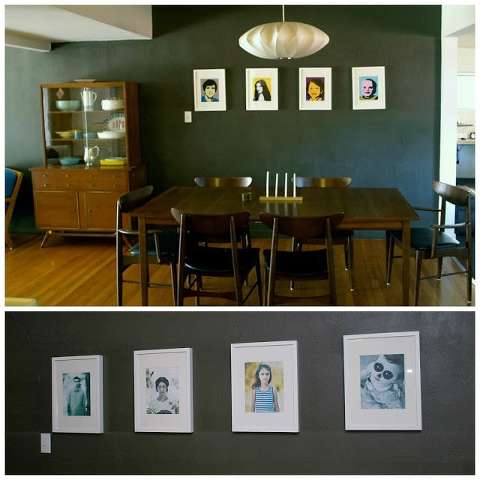 Well I finally printed these off and hung them in the place of our normal Warhol-esque family pictures hanging above the dining table. I don’t know why I didn’t do this earlier! I think this is my new favorite Halloween decor. People don’t notice right away, but when they do they gasp a little bit before busting out laughing. Of course little kids are like, Whaaaa?