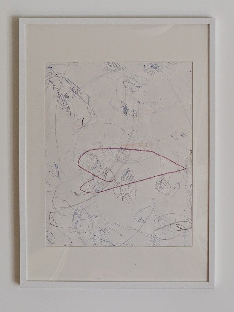 Yesterday I finally framed these 3 pieces by Lamp and I love them! I love the pages filled with scribbles on a white background, with white mattes, in white frames on a white wall. Luckily these pieces made it through the move as these were done sometime in San Antonio when Lamp was 3.