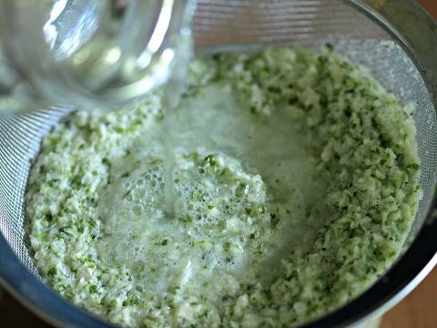 Strain the pureed lime concoction over a bowl/pitcher.