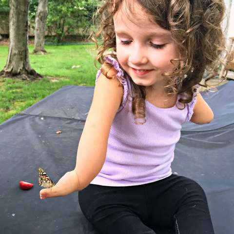 Thus, as a mom I’ve never really thought it was my job to play with or entertain my kids. Of course I definitely do engage with them and like to do fun things that would be considered ‘entertaining’ but again not on the daily. To be clear the girls have still had activities like swimming lessons, PSP just started violin lessons and soon we’re going to have a super cute, power chair riding cheerleader in the house! (This is both exciting and a little terrifying.) And there are little things like the caterpillar turned butterflies that we got to watch and subsequently let go. So we’ve definitely had these fun little things–maybe more that I realized when I started this post–but often I just send them outside and watch their imaginations open up.