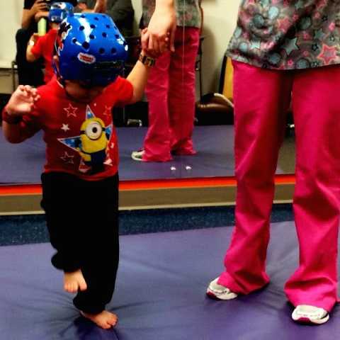 Katie: I think it’s amazing how Nathanial is dealing with everything. He was super stoked to get his helmet. He is obsessed with Thomas the train, so he calls it his Thomas helmet. Everywhere we go he asks anyone he sees, “Do you like my helmet?!” It’s almost always the things he has to say that make the situations funny and easier to deal with. When he was fitted for his adaptive stroller/wheelchair, he said “It’s my super stroller!!! It’s THOMAS blue!!!” He was quite disappointed that his orthotics don’t come with Thomas so he had to pick a different design!