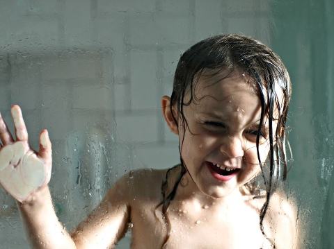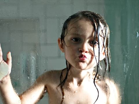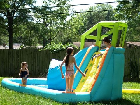 On the way home we stopped at the store where I ran in real quick for some hamburger, buns, corn on the cobb, watermelon and peach cobbler stuff. We went home, had a nice quiet time and then set up the waterslide in the back yard and BBQ’d the rest of the day away. The day ended with showers for the littles with some beautiful light streaming in.
