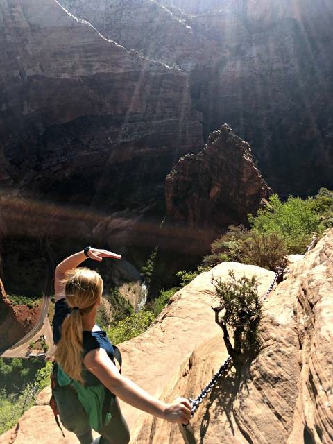 Missy, who has hiked Angel’s Landing before, was less afraid. As pictured. Also a bad ass.