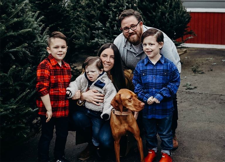 Hi! My name is Sarah, I am married to Eric, and we have three sons that are 2, 5, and 6 years old. We love being at the lakes around us and playing with our dog, Penny. I stay at home with my kids and run a shop called Wolfe Brothers Co (www.wolfebrothers.co). We live near Ann Arbor, Michigan but this summer we are moving to Nashville to allow our youngest son Josiah “Siah” to attend an amazing school for the blind. Siah, was born with a condition called OAVS (Oculo-Auriculo-Vertebral Spectrum). This condition can affect your eyes, ears, and spine, but it looks different for every person and usually only affects one side of the body. It’s caused by one blood vessel forming too small in the first weeks of pregnancy, not allowing adequate blood flow to that side of the body. For Siah, it caused microphthalmia that lead to blindness and sporadic asymmetry on one side of his body. One of the first things people notice about Siah right now is the small tube in his nose held in place by some special tape. That’s because the asymmetry in his facial structure makes it hard to breathe through his nose, so it’s just a soft tube cut to the length of his actual nostril to keep it open so he can breathe through is nose. It’s slowly self-correcting as he grows, so we are hopeful that in a year or so it will be gone! Siah is delayed, which is typical for visually impaired kids, and eighteen months in and out of the hospital after he was born really added to his setbacks. Since he’s past all his surgeries and feeling great we’ve been so happy with the progress he’s making.