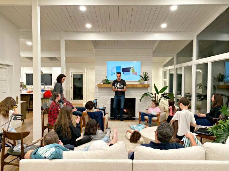 First, we had 19 people–including us–staying at our house! We briefly worried that it might feel overwhelming, and of course I really wanted everyone to be comfortable. A neighbor even offered us their home for sleeping if we needed it as they would be out of town, but thankfully we were able to stuff everyone in here and it felt cozy and not too crazy. That said, we did have one family in the “special room” which in our case, the workout room, but with a king size mattress on the concrete floor–but like Dan they made the best of it. That is to say with a half-smile and a dead look in their eyes.